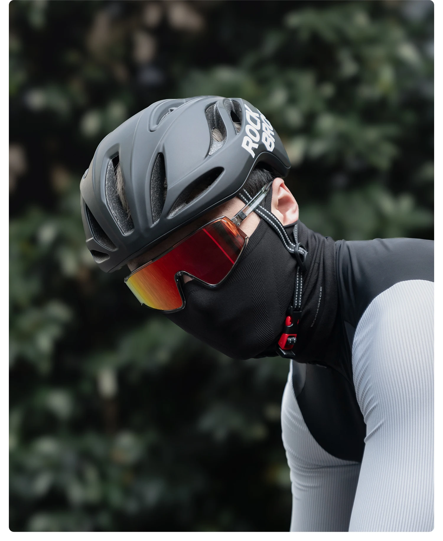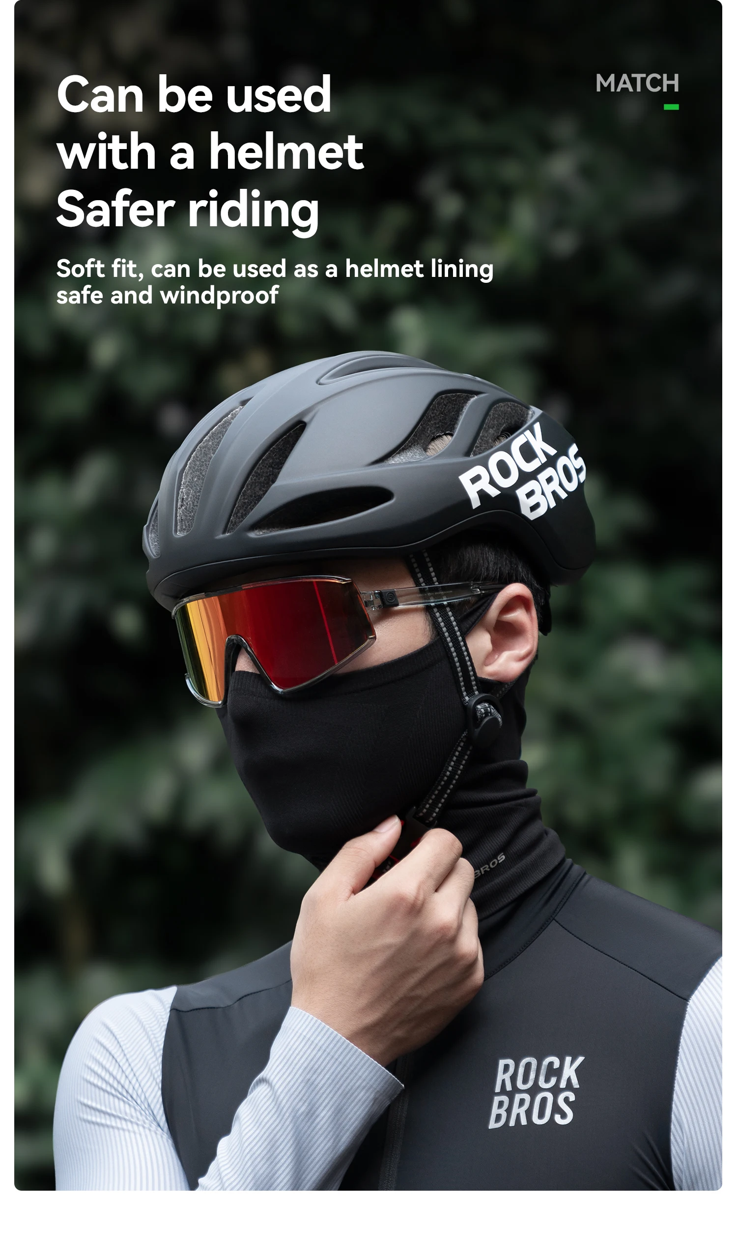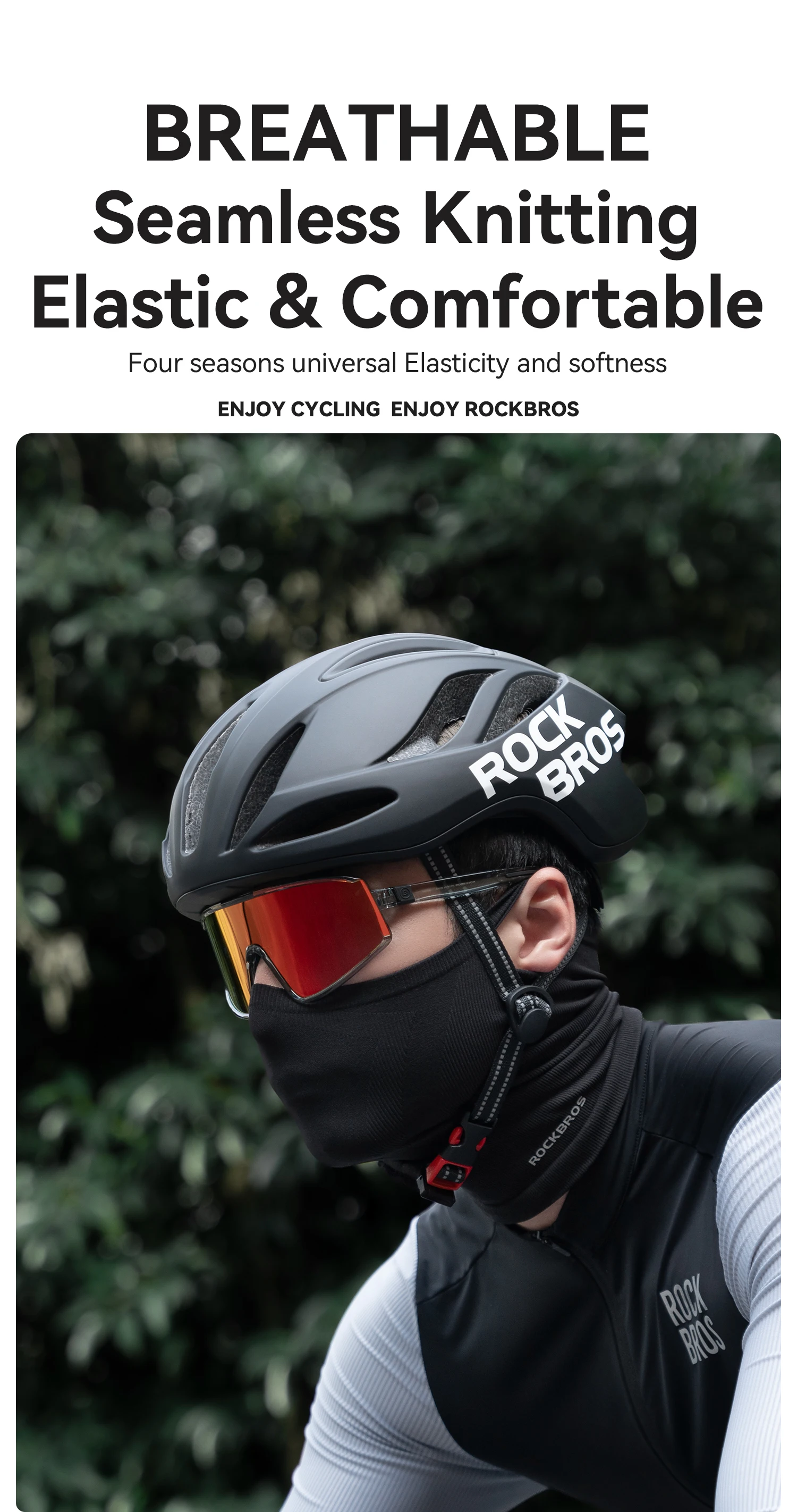 Flaches Design: Sein schlanker, dünner Stoff sorgt dafür, dass er bequem unter Fahrradhelme passt und lässt sich leicht anpassen, um als Halsmanschette oder Untergesichtsabdeckung zu fungieren.