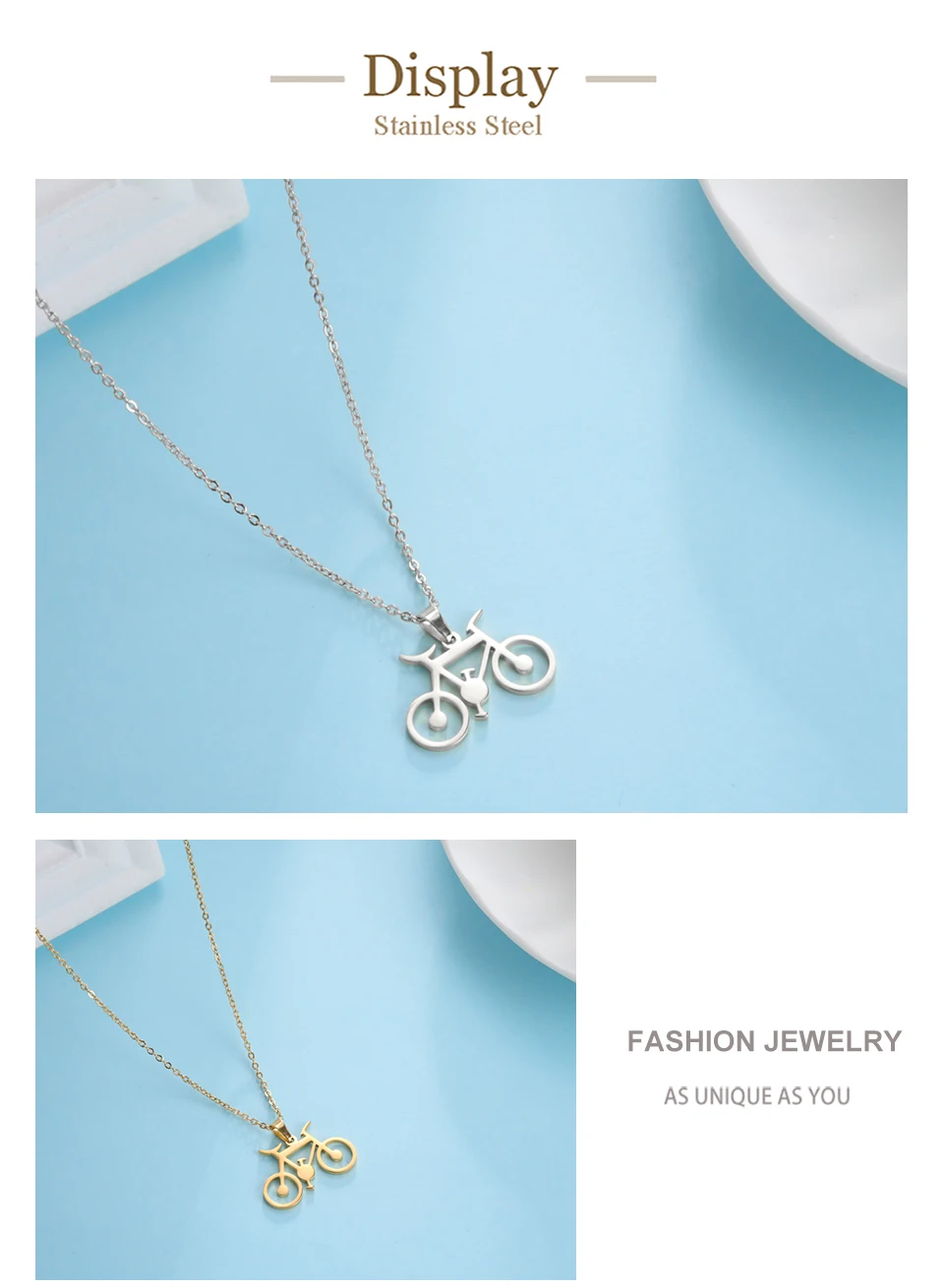Minimalistisches und modernes Design: Die Halskette verfügt über eine schlanke, vereinfachte Fahrrad-Silhouette, die ein subtiles, aber auffälliges Design bietet. Die klaren Linien und das elegante Profil machen es zu einem vielseitigen Stück für den täglichen Verschleiß.