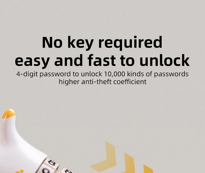 Keyless 4-stellige Sicherheit: Machen Sie sich nie wieder Sorgen, dass Sie wieder einen Schlüssel verlieren. Die 4-stellige, angenommene Kombination bietet bis zu 10.000 eindeutige Kennwörter für hochrangige Anti-Diebstahl-Schutz.