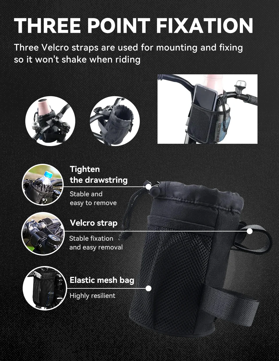 Halten Sie Ihr Wesentliche damit in Reichweite Lenkerflasche und Zubehörtasche. Diese vielseitige Beutel ist so konzipiert, dass Sie den Lenker Ihres Fahrrads befestigen und für Ihre Wasserflasche, Ihr Telefon und andere kleine Gegenstände einen bequemen und stabilen Speicher bieten.
