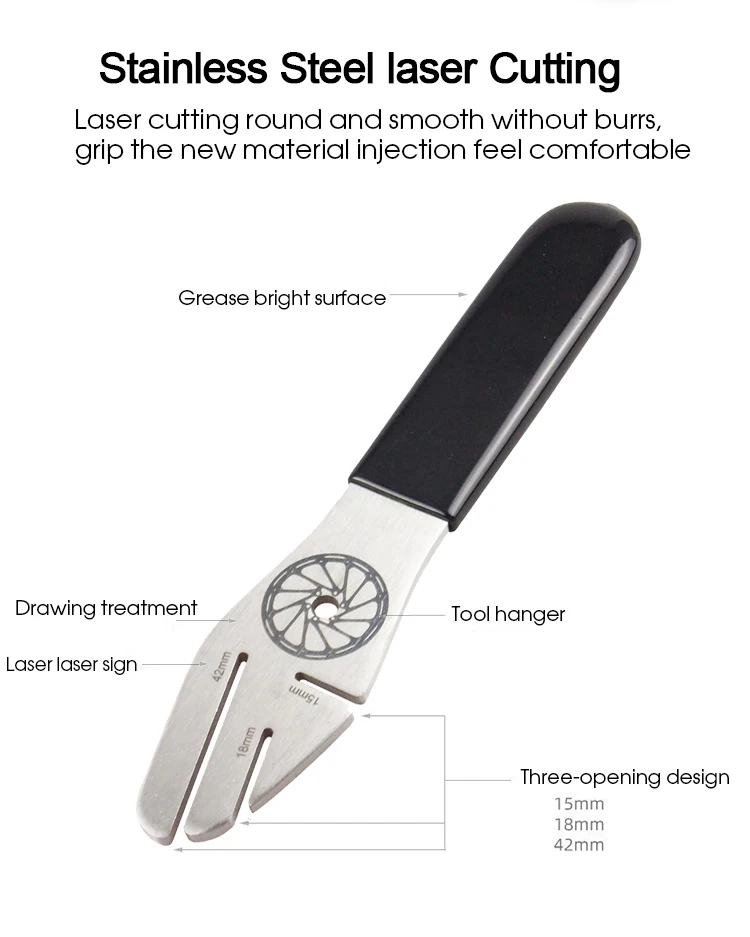 Dreieröffnungsdesign: Der Schraubenschlüsselkopf verfügt über drei verschiedene Slots (15 mm, 18 mm und 42 mm), um eine Vielzahl von Rotorkonstruktionen für eine präzise und sichere Passform aufzunehmen.