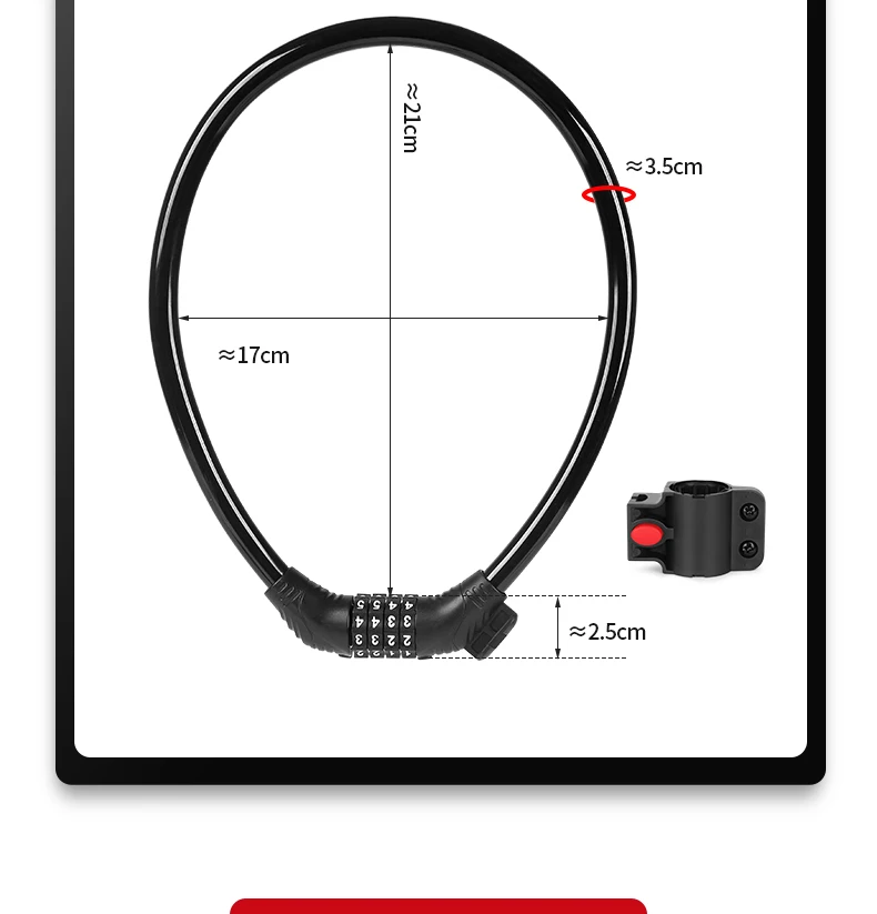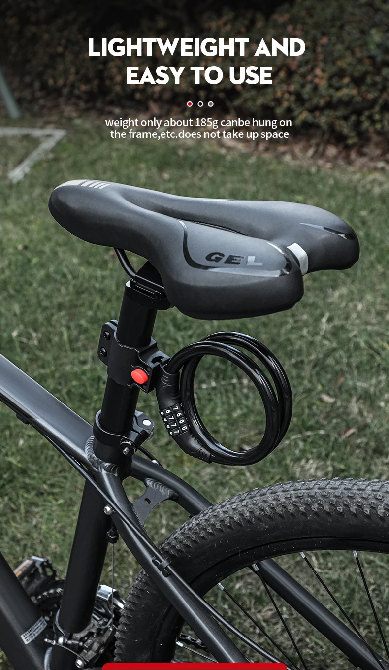Flexibel und vielseitig: Mit einer Gesamtlänge von 54 cm kann das Spulenstahlkabel leicht den Rahmen oder den Reifen Ihres Fahrrads in eine Vielzahl von Objekten befestigen.
