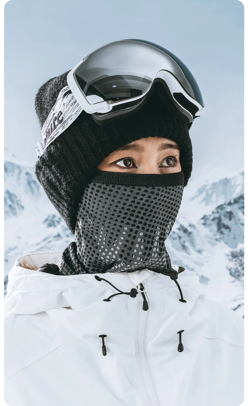 Hocheffiziente Temperatursperre: Verfügt über thermische Eigenschaften, die durch die Heatmap-Visualisierung angezeigt werden und darauf ausgelegt sind, Gesicht und Hals erheblich vor der kalten und rauen Winterluft zu schützen.
