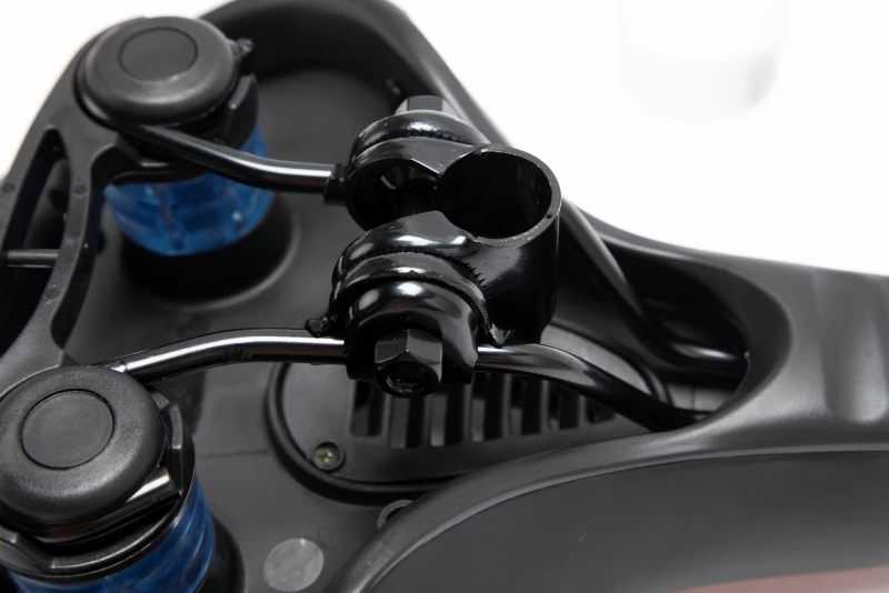 Kugelstoßdämpfersystem: Ausgestattet mit sichtbaren Doppelkugel-Stoßdämpfern in der Grundstruktur, die für eine wirksame Dämpfung von Stößen und Straßenvibrationen sorgen und so den Komfort auf unebenem Untergrund erhöhen.