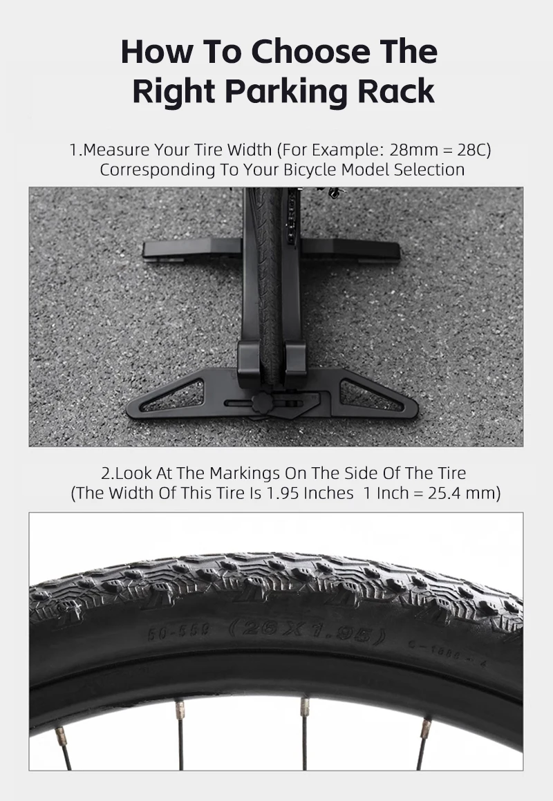 Breite Kompatibilität: Die "kombinierte Klammer" kann "frei an die meisten Fahrradreifen auf dem Markt eingestellt werden", mit einer Breite von "30-80 mm".