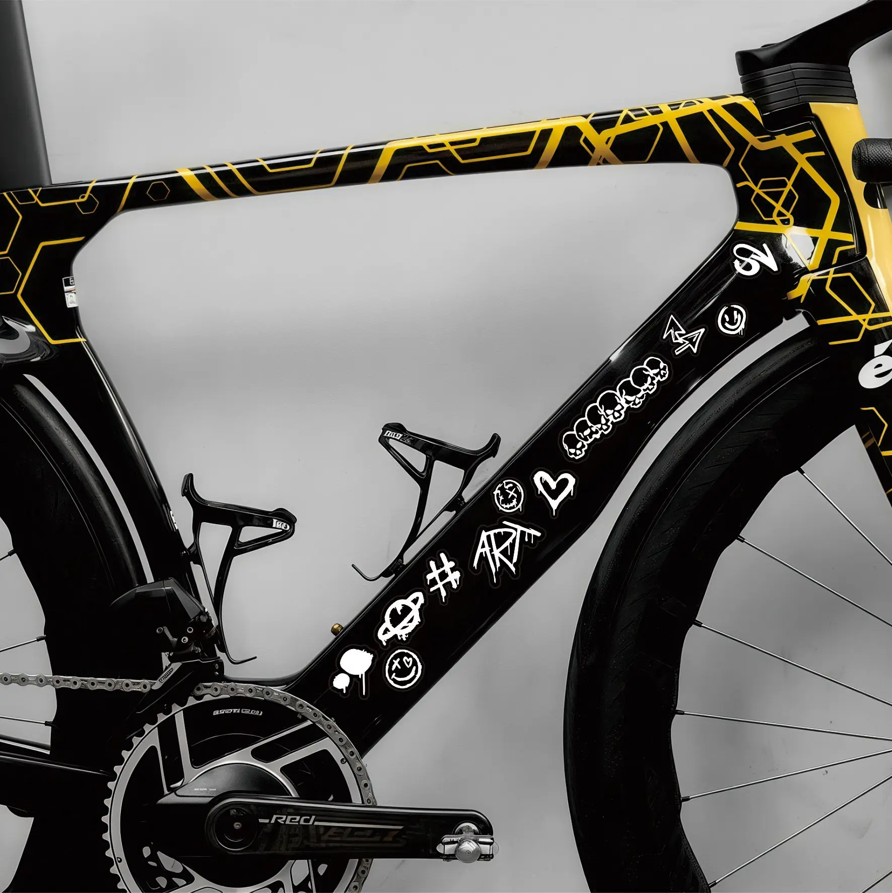 Las calcomanías para cuadros de bicicletas estilo Graffiti ofrecen una forma asequible y no permanente de personaliza completamente tu viaje. En lugar de un costoso trabajo de pintura personalizado, estas calcomanías te permiten crear las tuyas propias. diseño artístico que se puede actualizar cuando lo desees. el material de vinilo duradero garantiza que su obra de arte se mantenga vibrante incluso después de sesiones de senderos embarrados o desplazamientos intensos por la ciudad. Ya sea que desee un acento único o una revisión completa del cuadro, estas pegatinas brindan la calidad de nivel profesional necesaria para que su bicicleta se destaque en cualquier pelotón o calle de la ciudad.