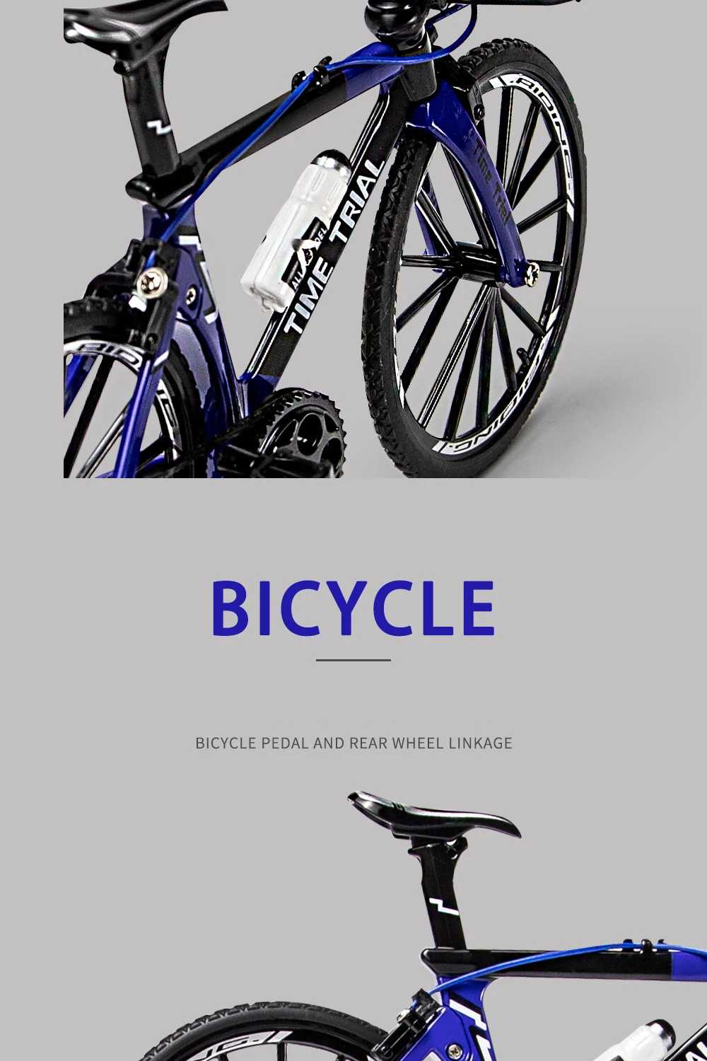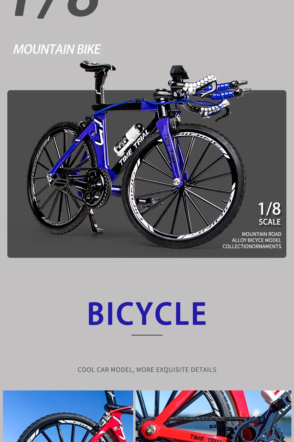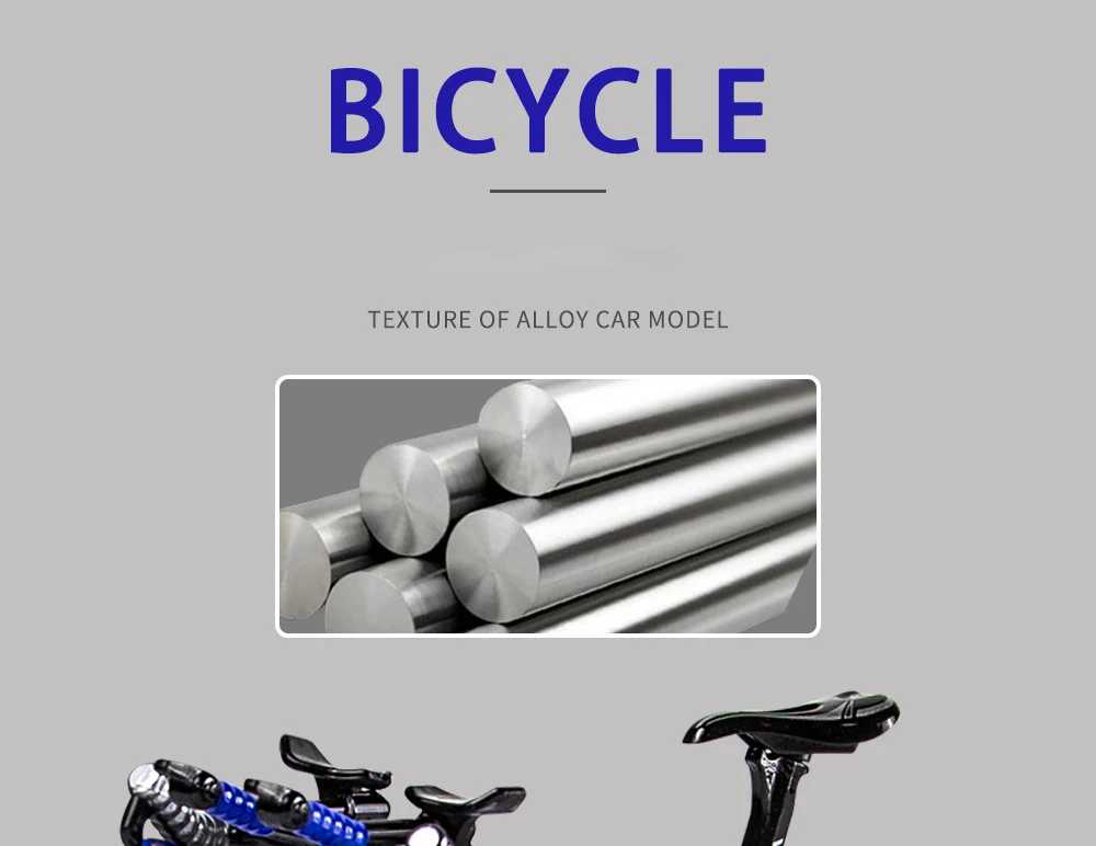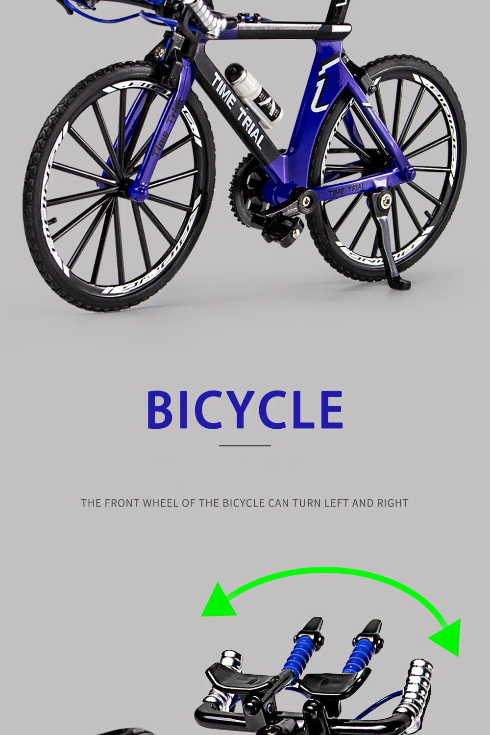 Realistic Time Trial Design: This miniature bike model is crafted with incredible attention to detail. It features a fully detailed alloy frame, a simulated seat, and a sleek aerodynamic design, mimicking the look and feel of a real time trial bike.