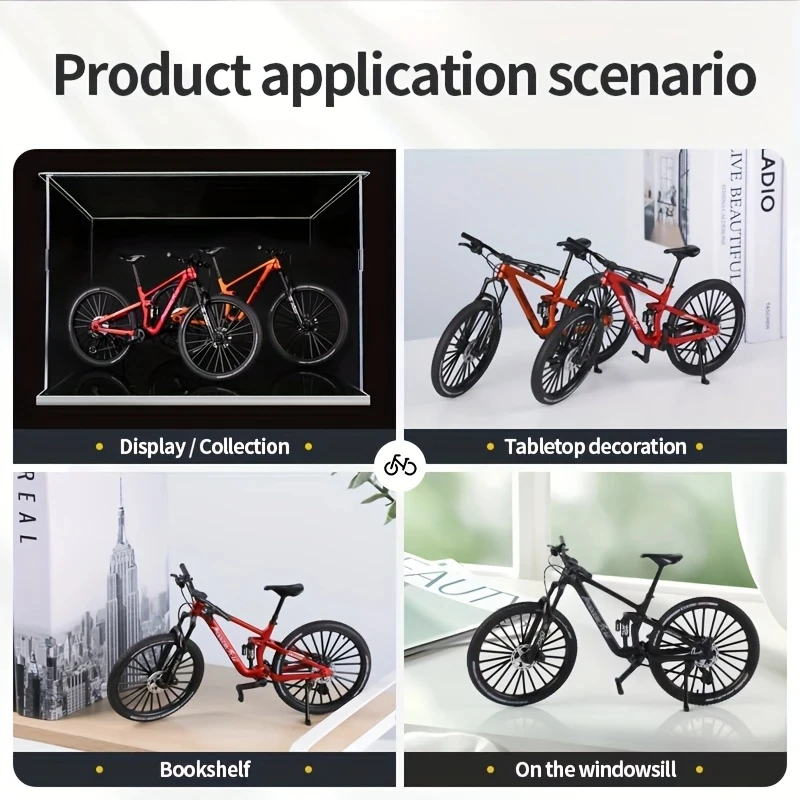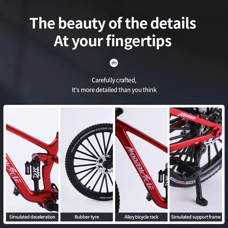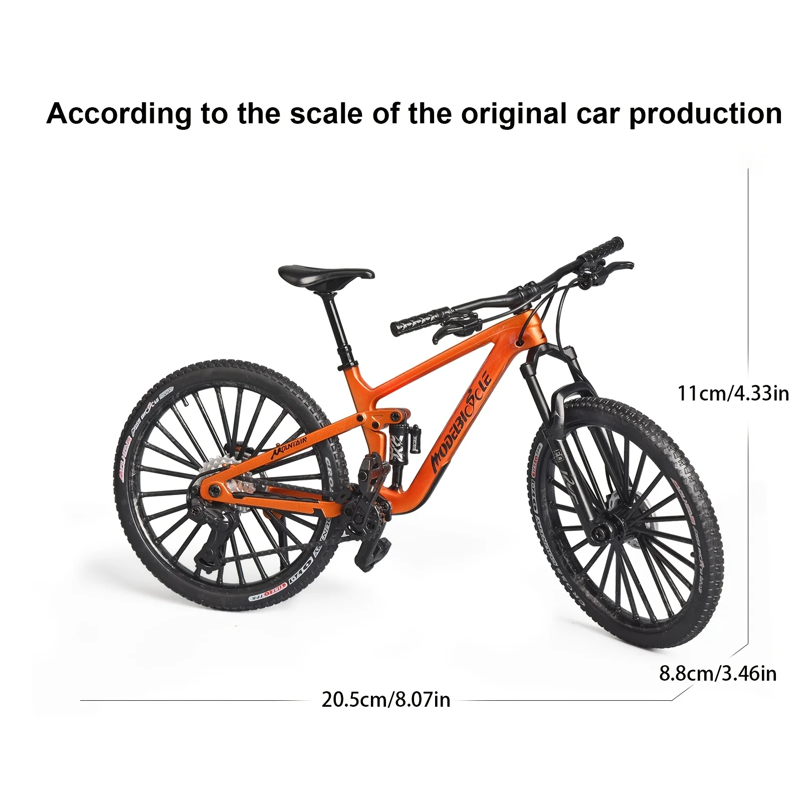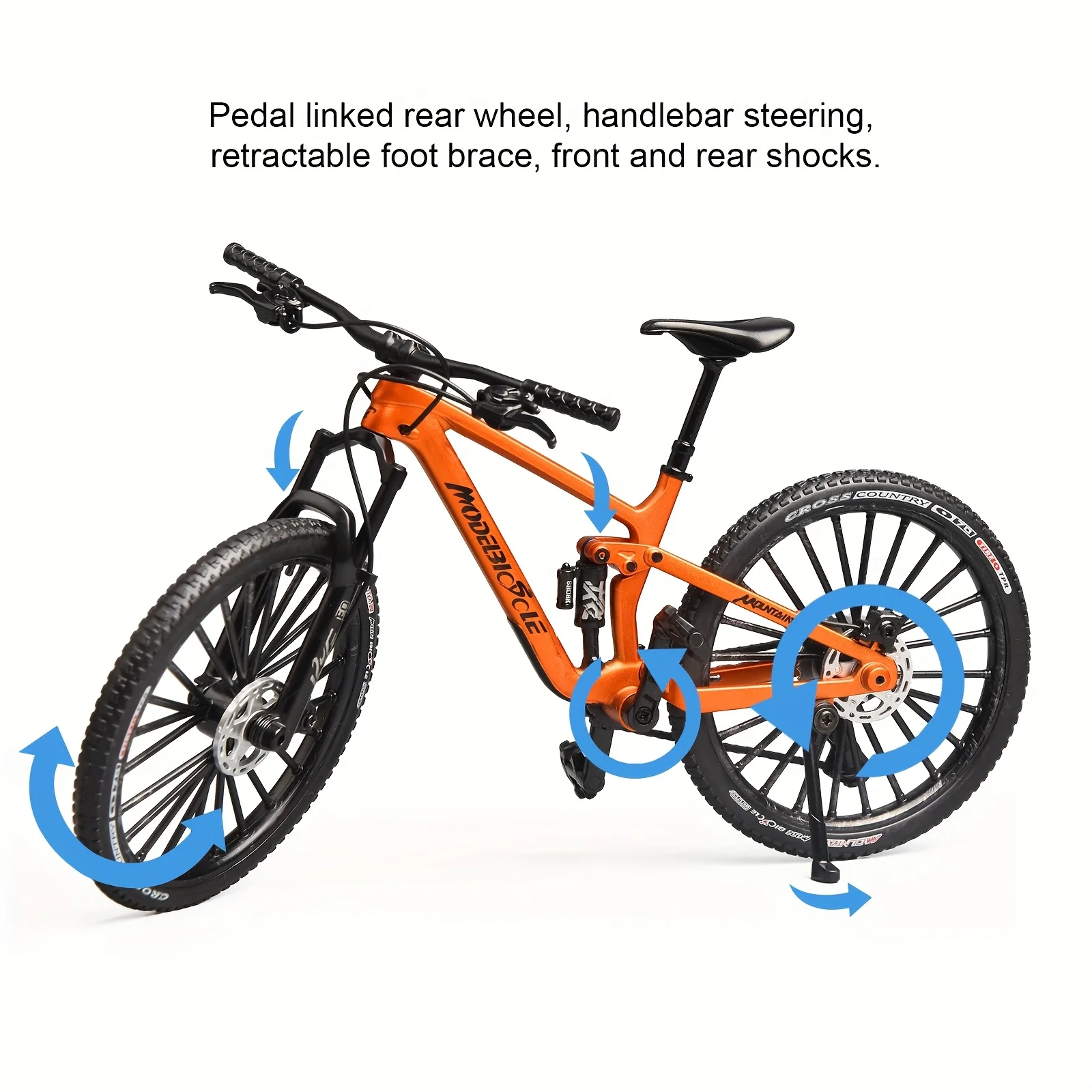 Realistic All-Terrain Design: This miniature bike model is crafted with incredible attention to detail. It features a fully detailed frame, handlebars, and a simulated shock-absorbing system, mimicking the look and feel of a real mountain bike.