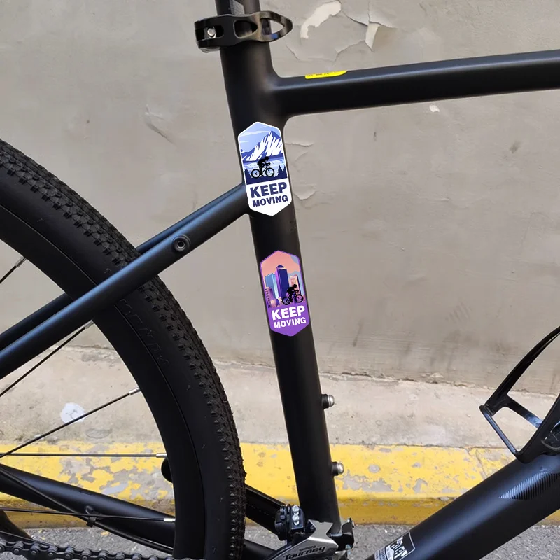 Personalize your ride and fuel your motivation with the Keep Moving Hexagon Bicycle Sticker Set. These vibrant, high-quality decals feature a powerful "KEEP MOVING" slogan set against stunning adventure scenes—from mountain trails to city streets. They're the perfect accessory for any cyclist looking to customize their bike and carry a dose of inspiration on every journey.