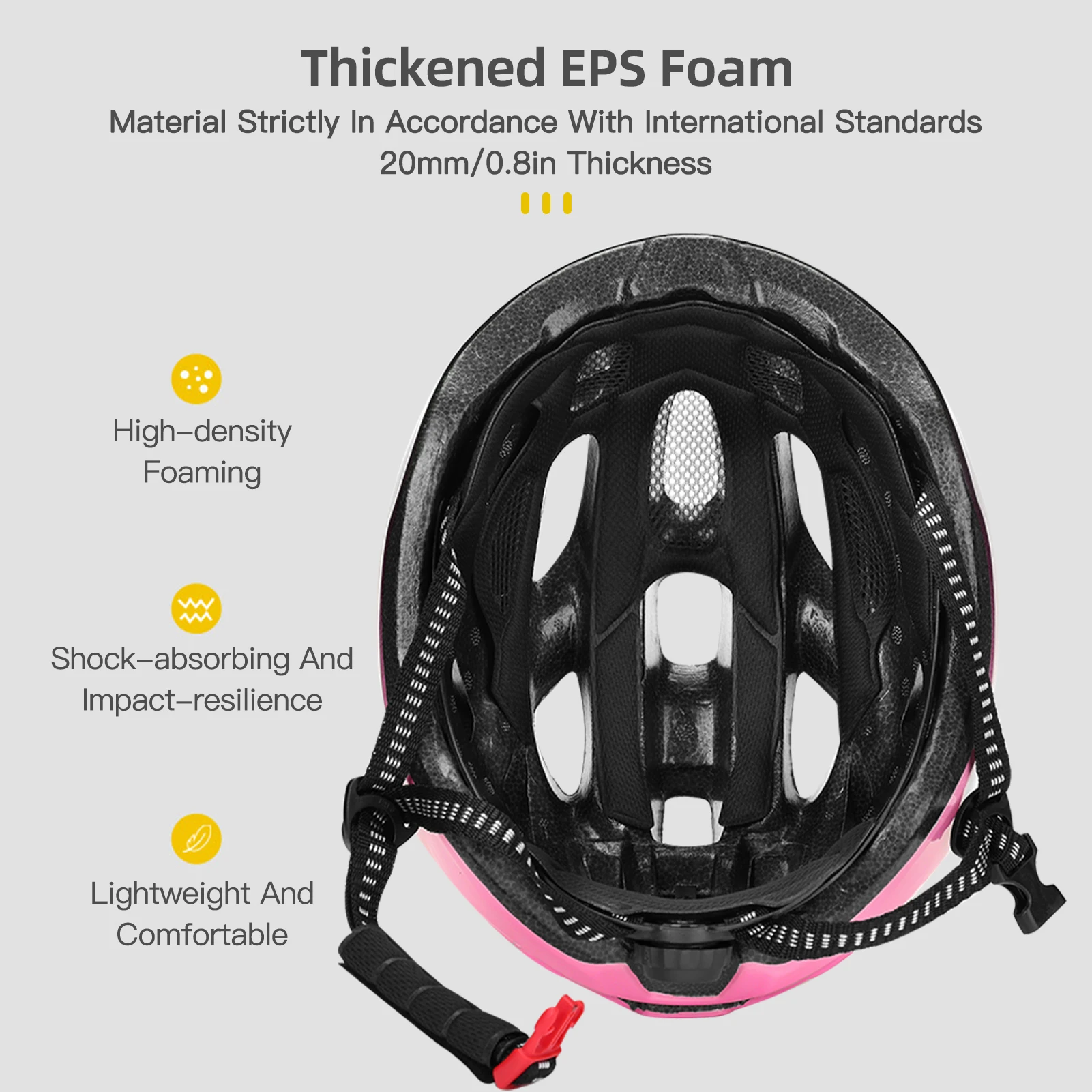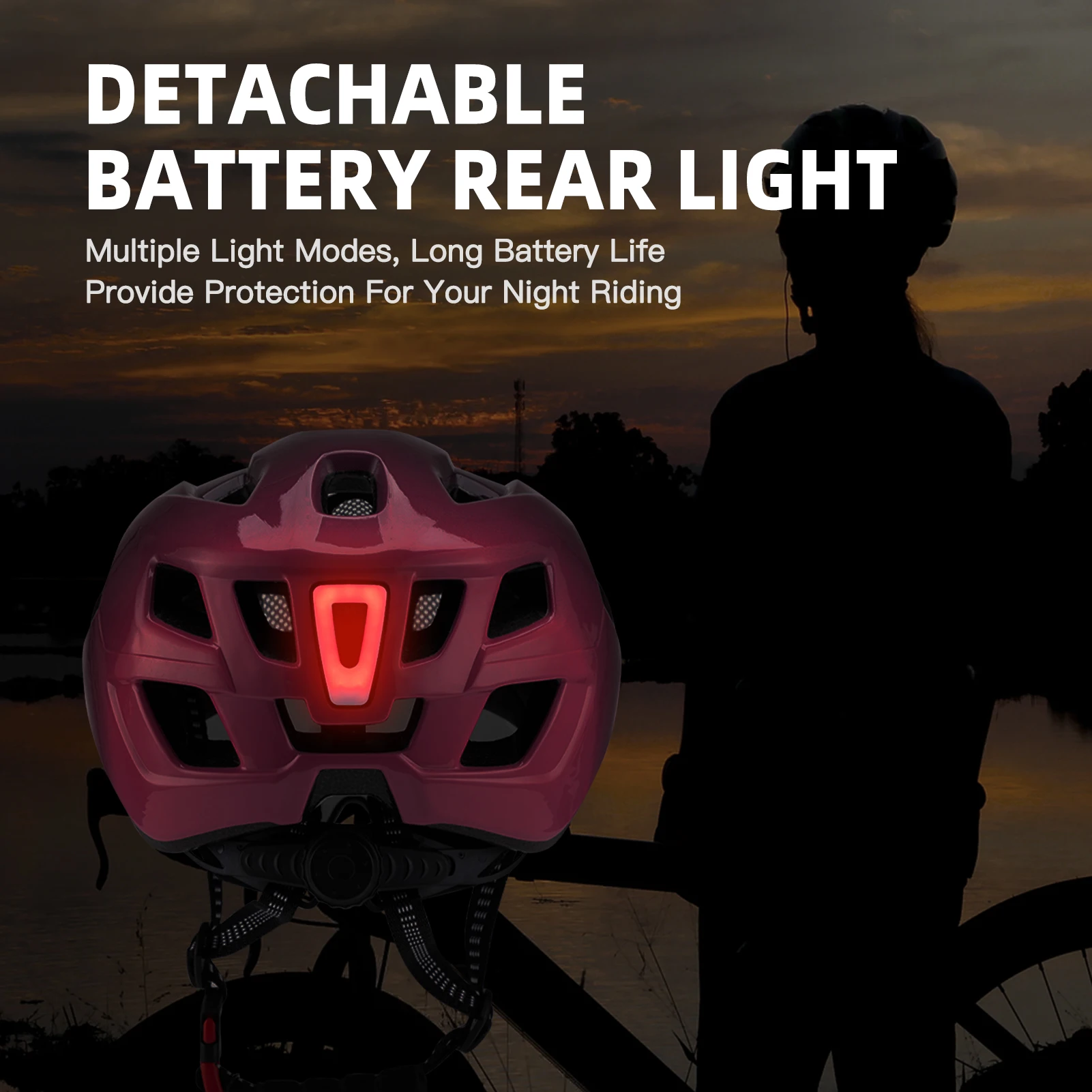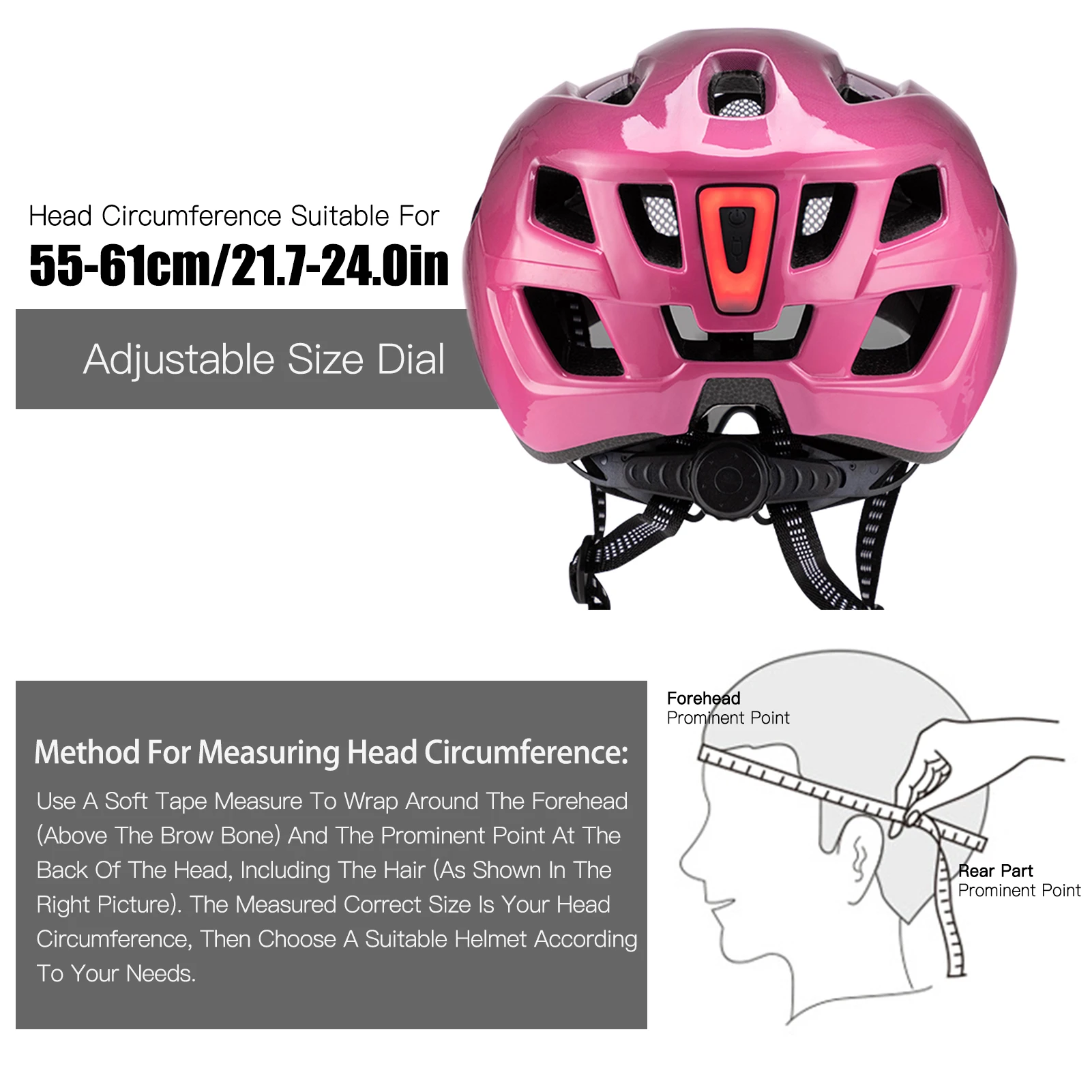 This helmet stands out by combining core safety features with modern convenience and style. The vibrant pink/black aesthetic is highly visible and fashionable, while the essential addition of a built-in rear light offers peace of mind for commuting or late-afternoon rides. It provides superior head protection and a secure, comfortable fit for various cycling disciplines.