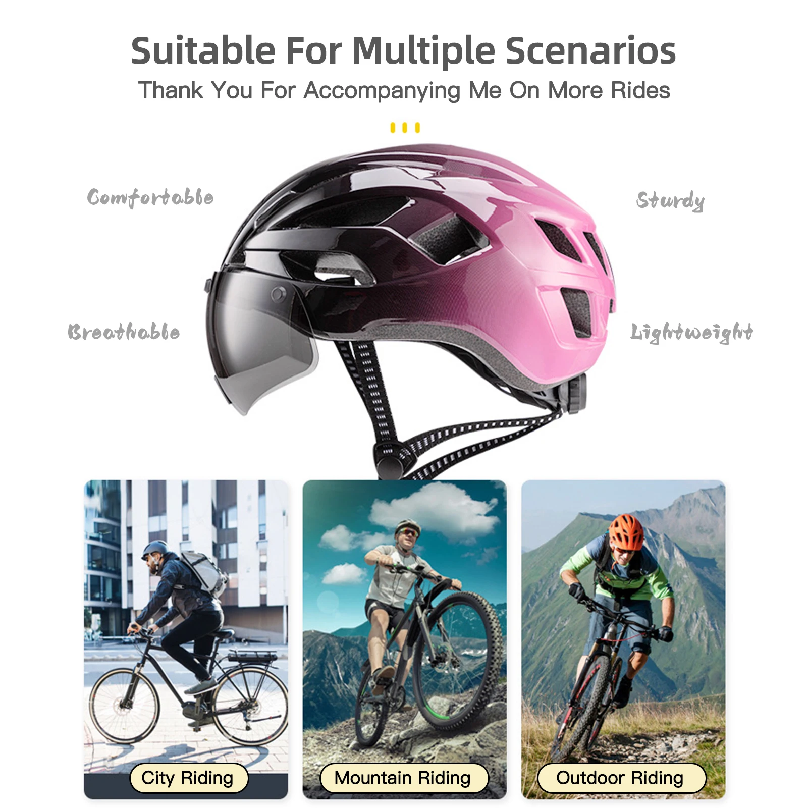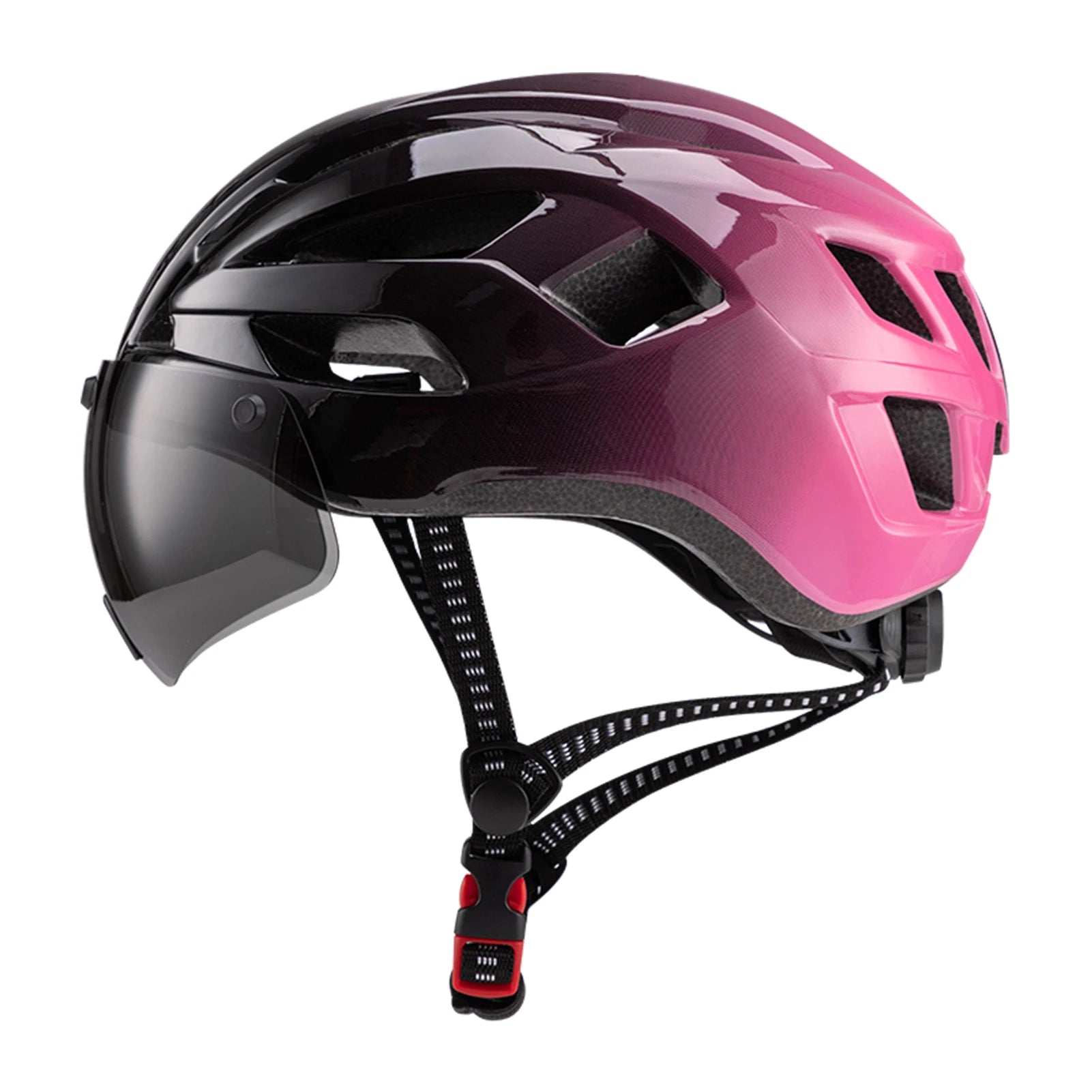 This is a versatile, multi-sport/mountain bike (MTB) helmet designed to offer excellent protection, comfort, and enhanced visibility. Its striking pink-to-black gradient finish and practical features make it an ideal choice for recreational riders, commuters, and trail enthusiasts.