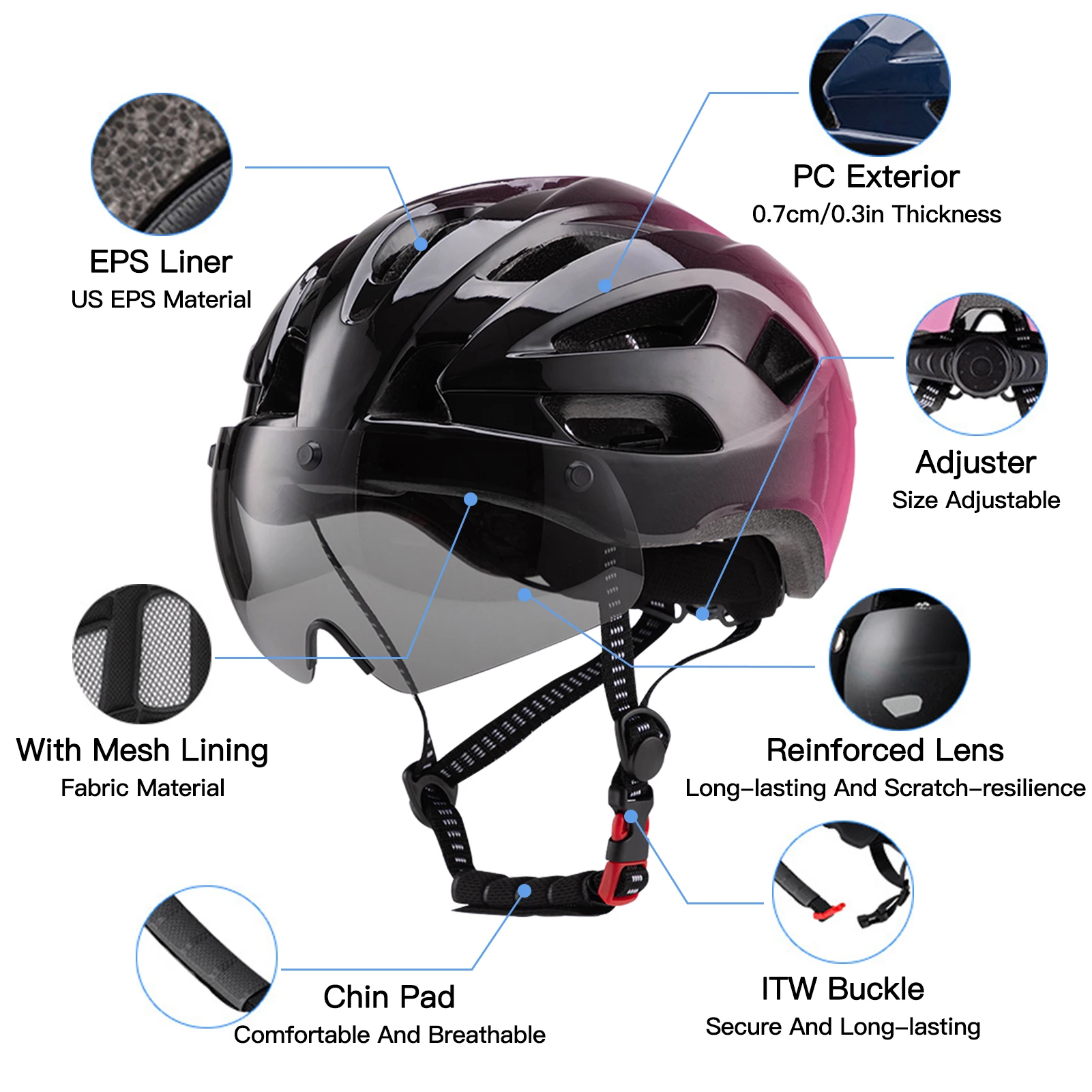 Multi-Functional Cycling Helmet with Detachable Light - Pink/Black Gradient