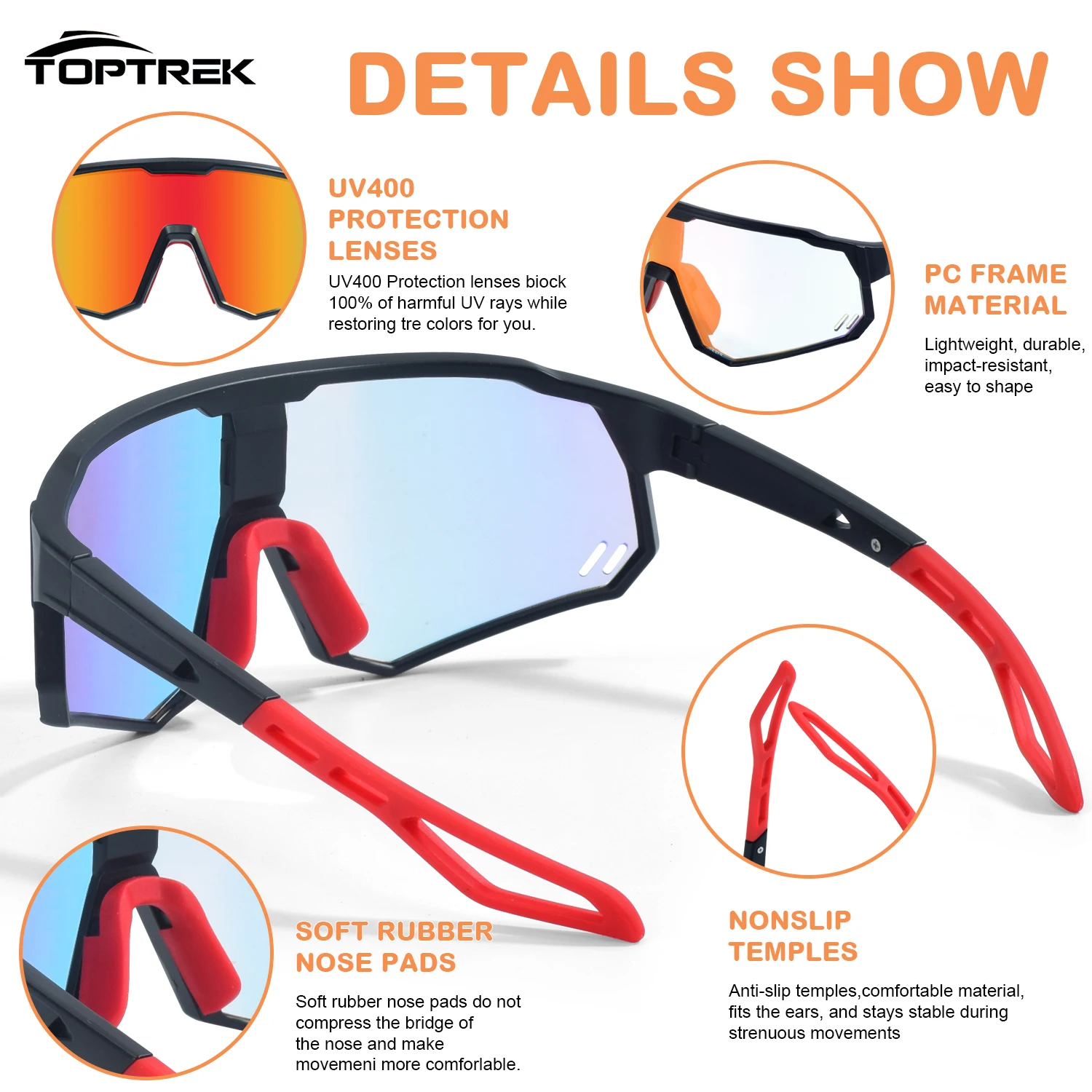 These sunglasses are the ideal solution for athletes who demand adaptive vision technology in a tough, functional package. The photochromic lens eliminates the need for multiple lens changes, while the anti-fog ventilation system ensures a consistently clear field of view. Combining a flexible PC frame with secure, comfortable features, they provide professional-grade protection and performance for cycling, running, and all-weather outdoor adventures.
