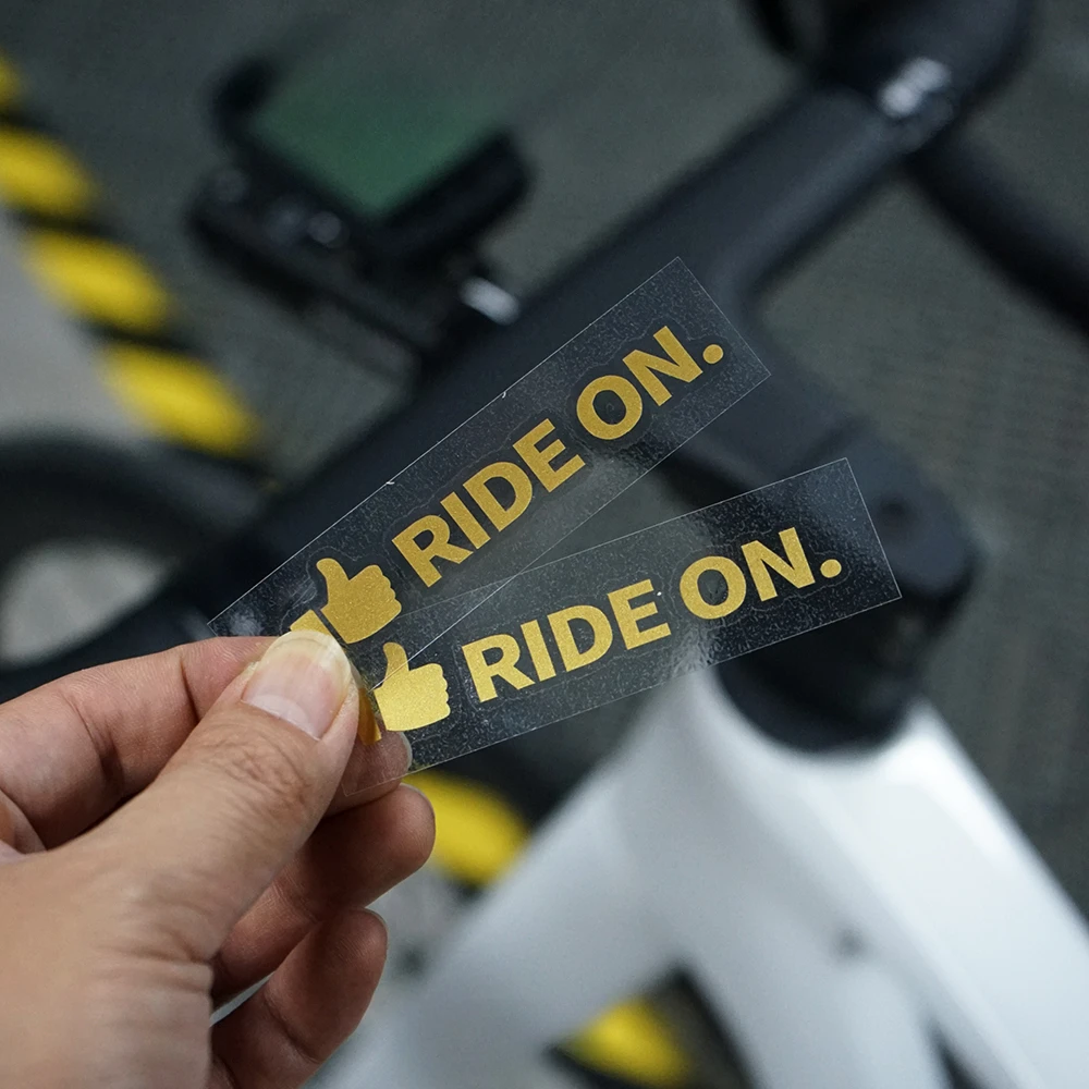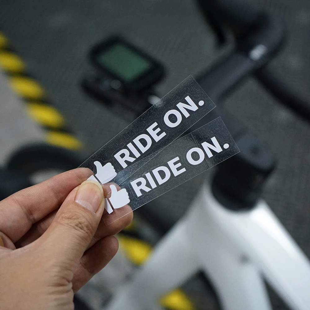 Give your ride a nod of approval with the simple and inspiring Ride On Thumbs-Up Bicycle Decals. These minimalist stickers feature the positive message "RIDE ON." paired with a universal thumbs-up icon, making them the perfect way to add subtle, high-impact motivation to your bike. Ideal for personalizing frames, handlebars, or helmets, these decals provide a clean, professional finish.