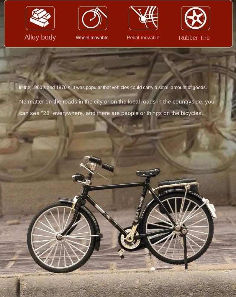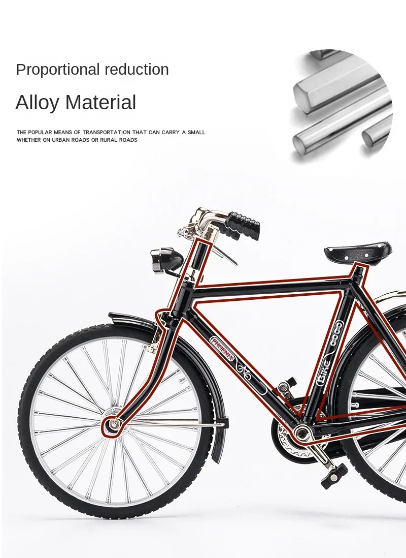 Perfectly Scaled Replica: This 1:10 scale model captures the iconic details of a classic bicycle, from the intricate spoke pattern to the saddle and fenders, making it an authentic decorative item.